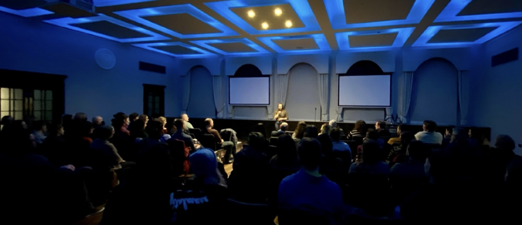 Venue selection is incredibly important in science communication activities. Not only are a venue’s physical attributes important — the seating arrangements, accessibility, lighting, sound capabilities etc. — but so is the venue’s social context. Your venue is the window through which you reach your target audience. It is your main tool of attracting different types of people. If you want a diverse, non-standard science event crowd, then pick a comedy club or pub to perform in. We were restricted in our venue, via our institution’s co-sponsorship of the project and so used the University’s new public engagement building. However, while the venue was more of a traditional conference, rather than comedy, space, we managed to arrange it to feel as much like a comedy gig as possible (see Figure 2). This included taking direction from our comedy performers, on how to set out seats and spotlight the performance area to recreate the stand-up comedy aesthetic. Again, this reinforces the point of recognising our comedic performers’ expertise.